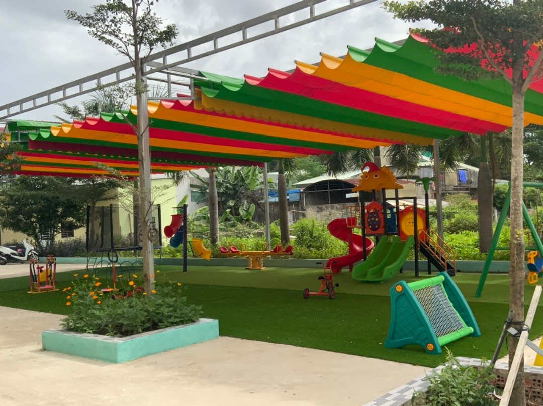 Cơ sở vật chất hiện đại, tiện nghi, khuôn viên rộng rãi, thoáng mát, yên tĩnh, an toàn với cây xanh, vườn rau, vườn hoa…